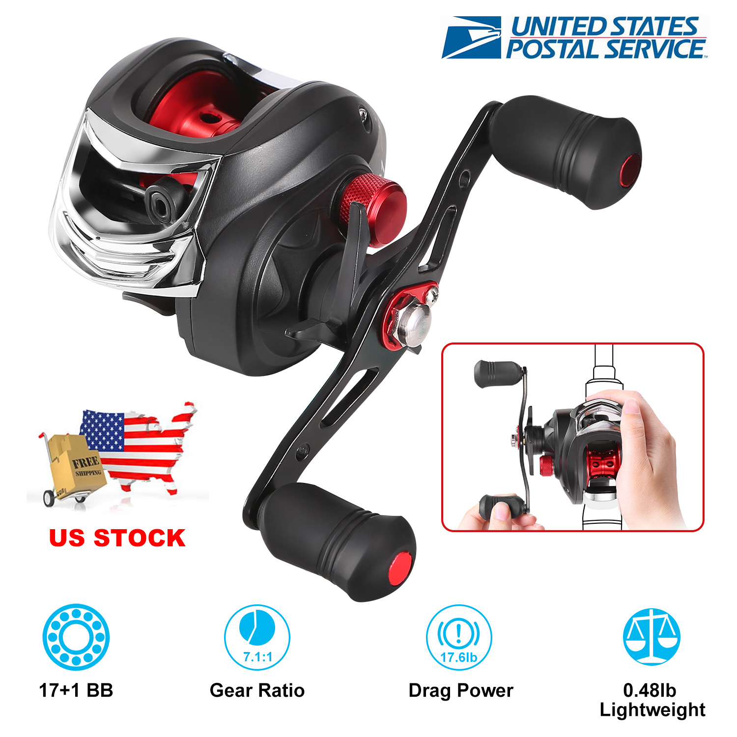 Home > Baitcasting Fishing Reel 17.5lbs Max Drag Baitcasters 17+1 BB 7.1:1 Gear Ratio Baitcast Fish Reel High Speed Long Cast Distance